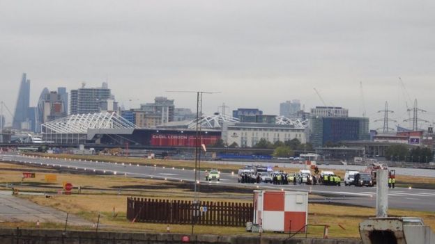 All flights at London City Airport were disrupted after protesters gained access to the runway.