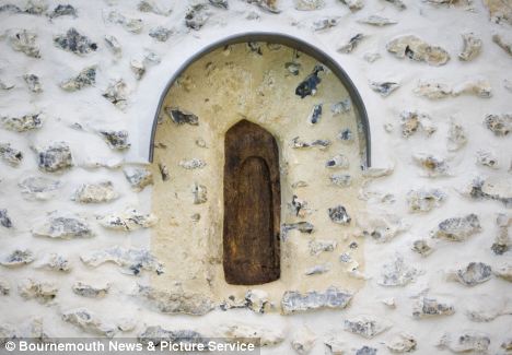 The tiny wooden frame measures 2ft tall by 1ft wide and had been buried in the church's wall