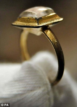 Extraordinary discoveries: The abbot in his grave, left, and a ring and the head of a crozier found next to him