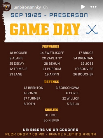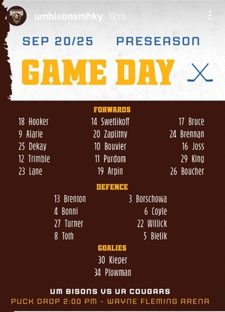 The Bisons will not be starting until next weekend. In fact, almost everybody is. Two CW teams play an interlock, and two OUA teams play one another out east.