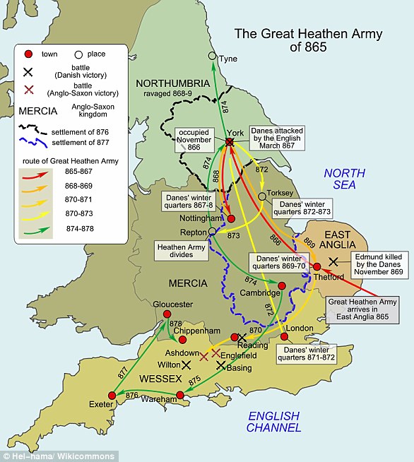 Thousands of them arrived in East Anglia in 865 AD and quickly overran Northumbrian forces. They then spread across the country, wreaking havoc as they went during the 14 year long campaign