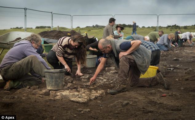 Lead archaeologist Jacky Nowakowski said: ‘We have already found two prehistoric flint tools in amongst the stones.