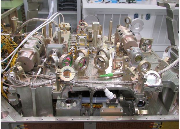But on Thursday, the British engineers were finally able to lower a completed Aladin laser instrument - together with the telescope it will use to spy the scattered light signal - on to the rest of the satellite.