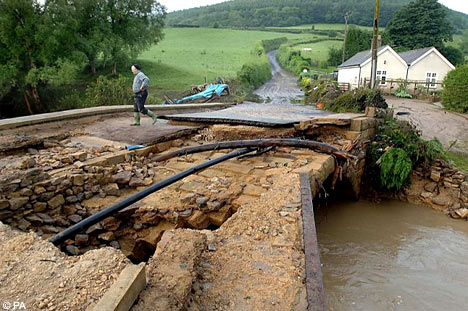 Shaken Bridge in Hawnby, North Yorkshire was badly damaged as freak weather caused the River Rye to burst its banks