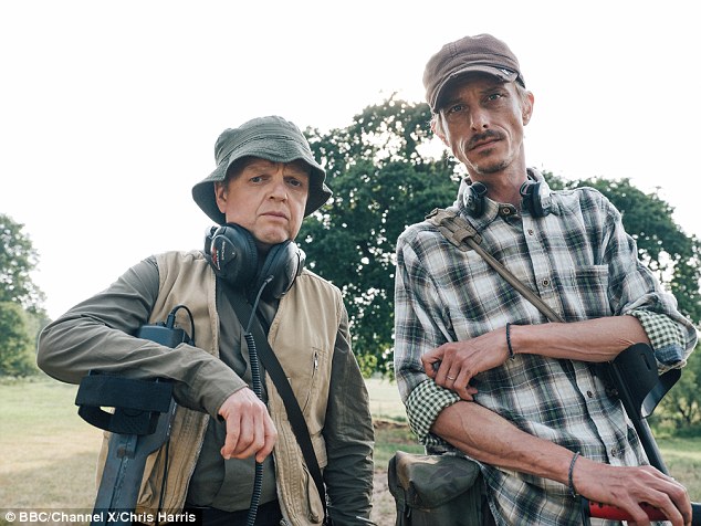 The BBC comedy series Detectorists, starring Mackenzie Crook and Toby Jones (pictured), and reports of huge finds like the 14,865 coin Hoxne Hoard have also helped drive the popularity of metal detecting