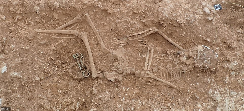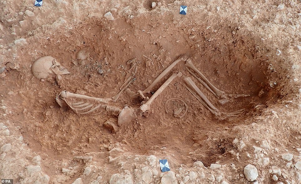 Male remains found at the same site were buried with weaponry such as spears and shields but 'Children were notably absent in the parts of the cemetery excavated this year'