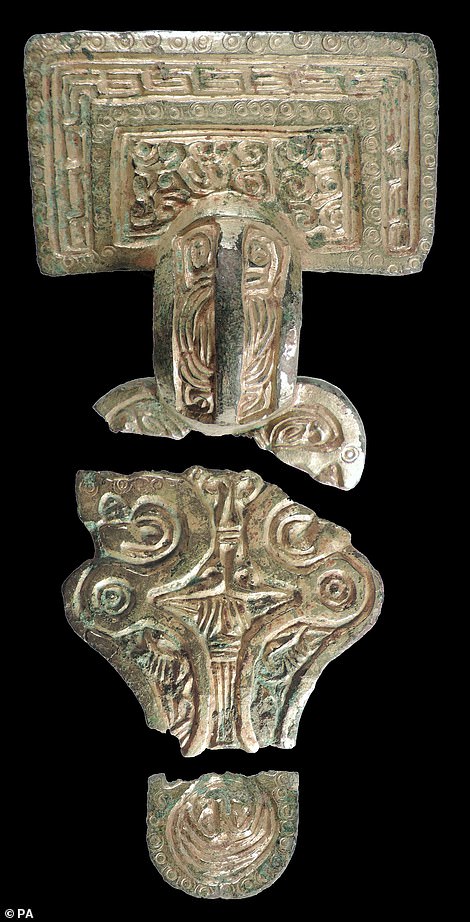 Skeletons of men were also found at the 1,600 year old site buried alongside spearheads and shields