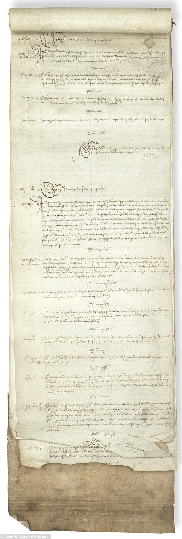 The faded document was bought by an anonymous collector after specialists who transcribed the scroll described it as in a remarkable state of preservation after surviving for nearly 600 years