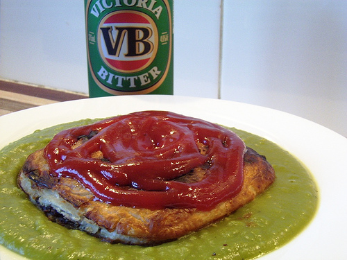 That looks delicious. What's wrong with it? Don't you have meat pies, pea soup and tomato sauce in Canadia? Or is everything you eatd renched in maple syrup?