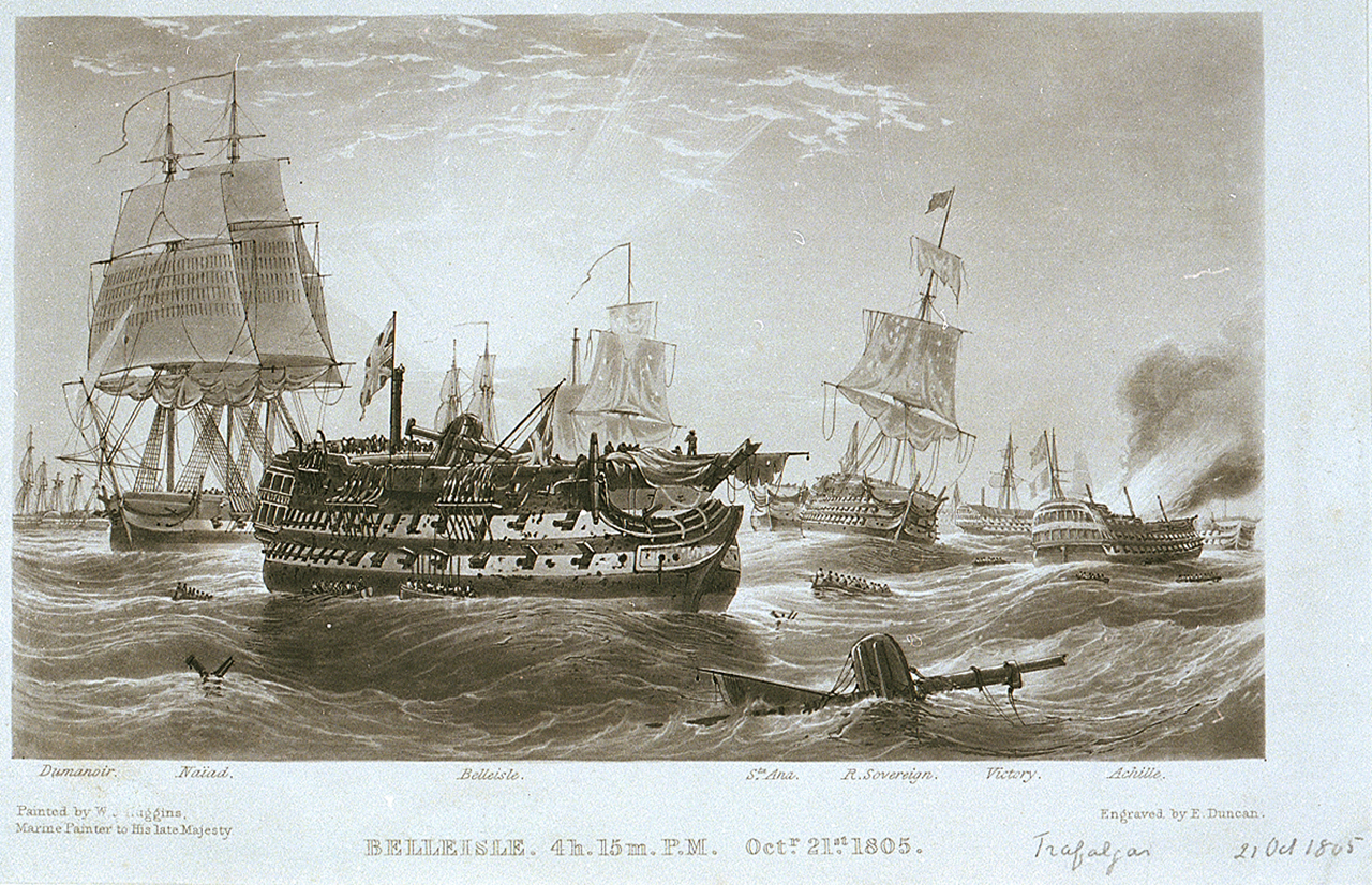 The Belleisle was second into battle, closely following the flagship HMS Royal Sovereign into enemy lines, and in the very thick of the action, at one time firing at the Fougueux and the Santa Ana simultaneously.