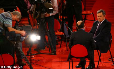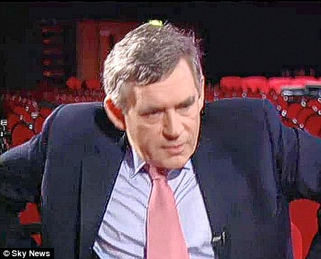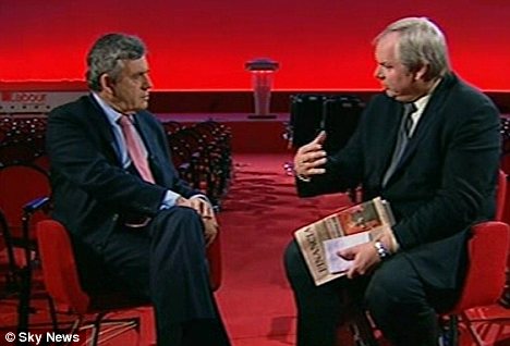 Exasperated: Gordon Brown tried to storm out at the end of an interview with Sky's Adam Boulton because he was not allowed to talk about policy