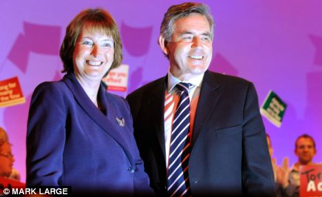 In the spotlight: Harriet Harman and Gordon Brown at the closing session of the Labour Party Conference today