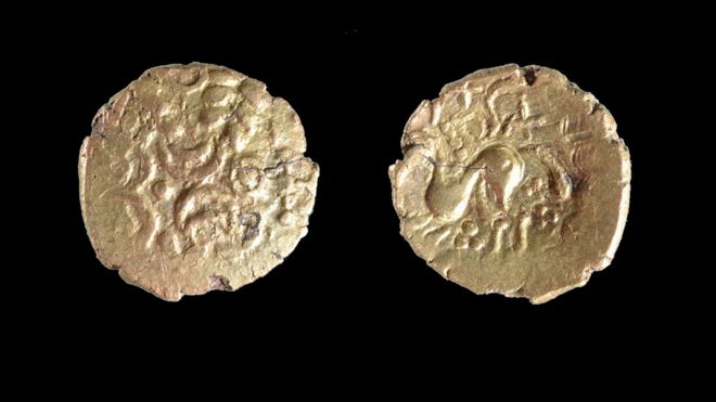 She said many of the gold staters and quarter staters were attributed to pre-Roman tribal leader Addedomaros, King of Trinovantes.