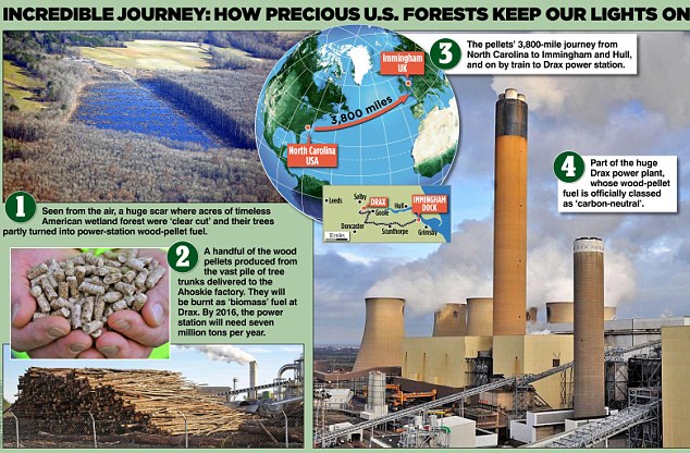 Woodland is shipped 3,800 miles and burned in Drax power station | Mail Online