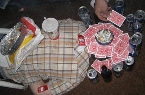Game of cards anyone? This person's head also doubled up as a small table