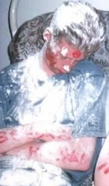 Silver lining: This boy won't be happy in the morning after being covered in paint