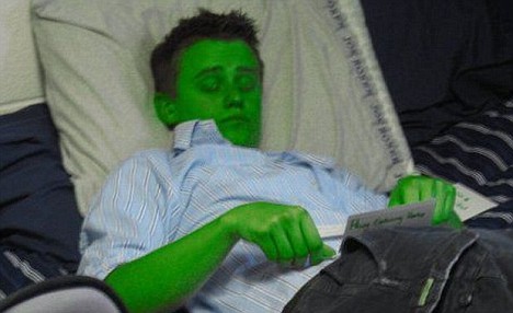 Feeling green: This lad's pals obviously thought he was a fan of Kermit the frog