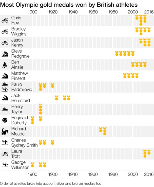 Great Britain are third on total golds since 1896 with 247.