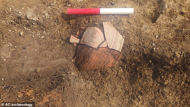 The excavation gives a rare insight into the process of conquest and the way the military and civilian community worked at the time. This image shows a broken piece of pottery found in the remains