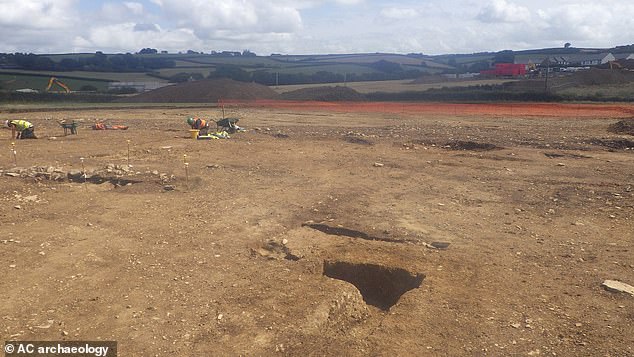 Archaeologists have uncovered the remains of a Roman town on a building site in Devon where new homes are being built. This image shows experts from AC archaeology at the site