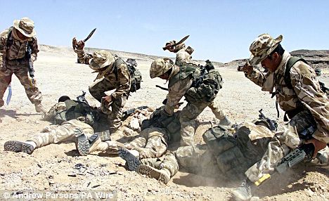 Deadly: A platoon of British Army Gurkhas demonstrate their skill with their kukri knives in a training exercise, after it is revealed that one of their regiment chopped off the head of a Taliban fighter in order to find proof of ID. Legend states that a Gurkha "never sheathes his blade without first drawing blood."