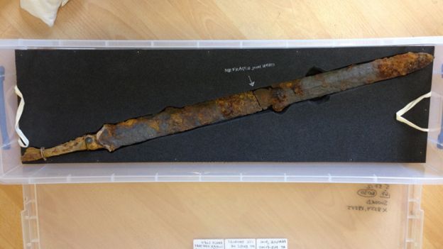 A sword and items of jewellery were found