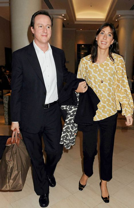 Spouse support: David Cameron with wife Samantha in the Hyatt Hotel