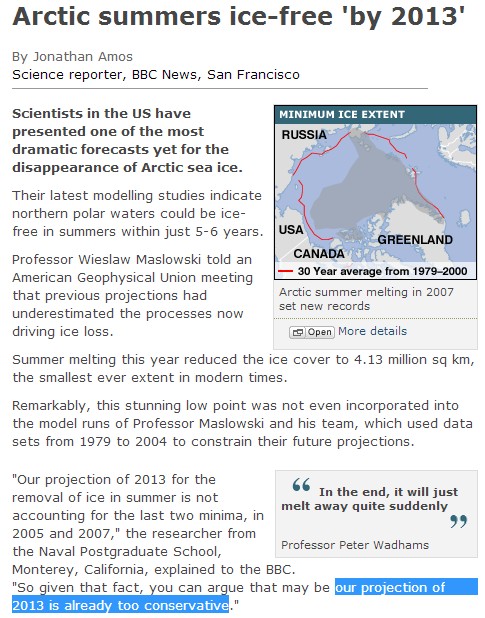 From the Global Warming-obsessed BBC, 2007. We have, as yet, received no apologies from either the BBC or the other Warmists for being so laughably wrong -