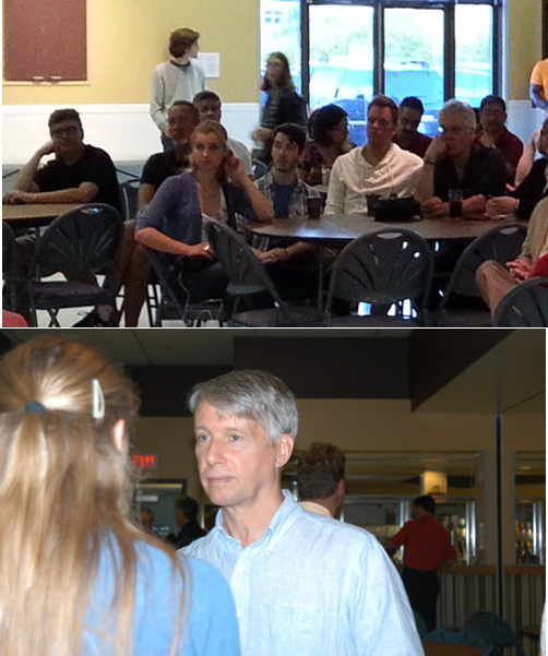 speaking of the lil' covert Alexandra Constantinidis, if I interpret correctly, it's the Liberal party that suggests she did the same kind of thing by recording Andrew Leslie, the retired Canadian Forces Lieutenant-General, seeking a Liberal nomination for the 2015 election... somehow a recording associated with questions taken by 'this blue-sweater wearing person" in the pics below ended up with Sun News - go figure.