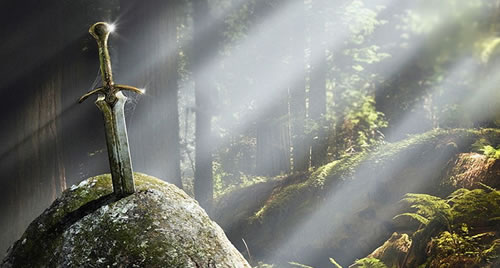 At this point, Merlin supposedly arranged the test of the Sword in the Stone, which only the true king could draw. This sword is often confused with Arthur’s most famous weapon, Excalibur, the legendary sword said to have magical powers. In fact that blade was given to Arthur later by the Lady of the Lake (a ‘faery woman’ who appears in the stories), after the sword from the stone breaks during battle.