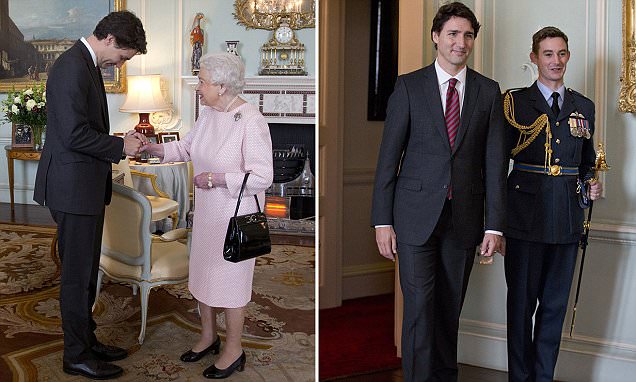 Her Majesty, 89, assured Canadian Prime Minister Justin Trudeau, 43, of a warm welcome by placing an everyday plug-in heater in the opulent surround of her fireplace (left). It is the liberal leader's first trip to meet The Queen since winning the election and after a decade of Conservative rule. His father, legendary Canadian PM Pierre Trudeau, met the monarch many times over his 15 years in power.