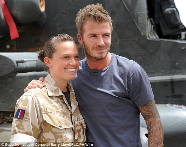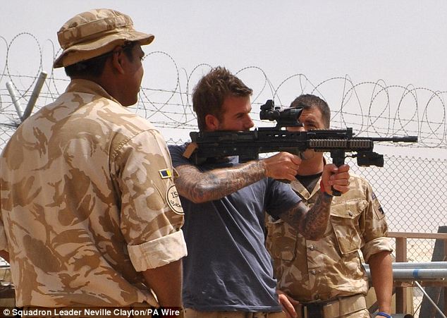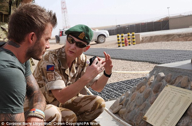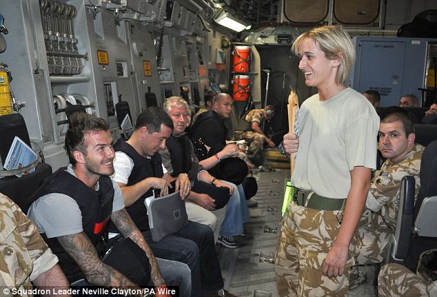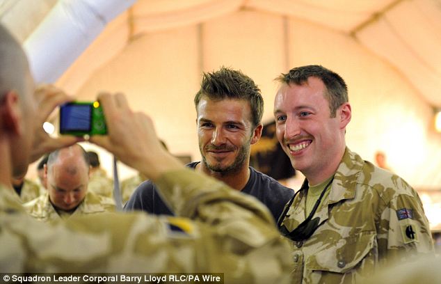 Beckham who, dressed in khaki, looked like a British soldier. And he also revealed during the trip yesterday that he probably would have joined the British Army if he never made it as a footballer.