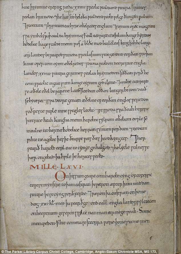 Shown here is the first attested contemporary observation of a comet in England, recorded in the Anglo-Saxon Chronicle in May 891 during the reign of King Alfred the Great. It reads: 'There appeared the star which is called in Latin cometa. Some people say that it is in English the long-haired star, because there shines a long ray from it'