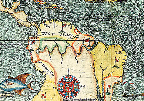 This set of charts, depicting towns “visited” by Drake’s fleet, are of particular importance because they gave Elizabethan England the first glimpse of America. Among the charts is a view of St Augustine in northern Florida — the earliest printed view of any city in North America.