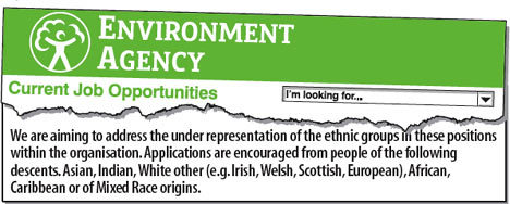 The Environment Agency admitted it had 'no evidence that white Welsh, Scottish or Irish workers were under-represented' in the Anglia region.