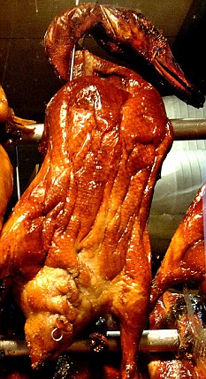 Quote:"Peking Duck dates back more than 600 years and was traditionally served at feasts. It is prepared by forcing air between the skin and the meat and then roasting, leaving the skin extra crispy.""