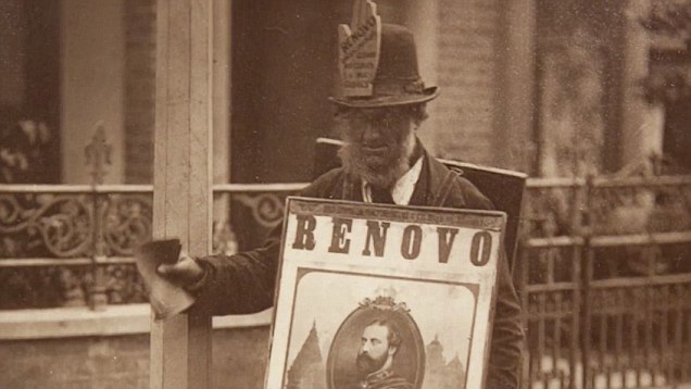Included in the 36 photographs are images of men hiring out donkeys in Clapham; Covent Garden flower women; an elderly lady holding a baby in the street; a young boy working as a shoe polisher; a group of British soldiers having a drink outside a pub; an umbrella seller; a chimney sweep and his boy assistant (young boys were small enough to fit up the chimneys); omnibus driver "Cast-Iron Billy"; and, appropriately considering it is 5th November tomorrow, a monster effigy on its way to a bonfire on Guy Fawkes Night.