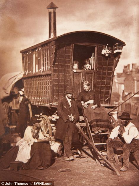 Extreme poverty: Some of images in Street Life In London (pictured bottom) show people such as the 'London Nomades' (top) living in shocking conditions