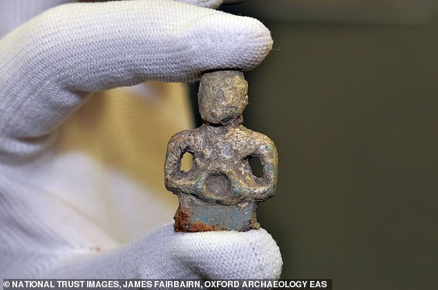 The 2000-year-old figurine was found at the National Trust's Wimpole Estate in Cambridgeshire. The small figure's face has been worn away and holds a 'torc' or a neck ring which represents 'Cernunnos', the Celtic god of nature, life and the underworld.