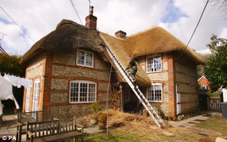 Final straw: A thatcher at work in the village of Linkenholt