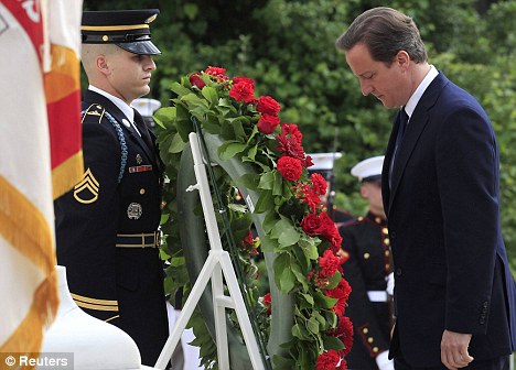 David Cameron lays a wreath at Arlington Cemetery in Washington, but at home his comments about the Second World War have sparked anger