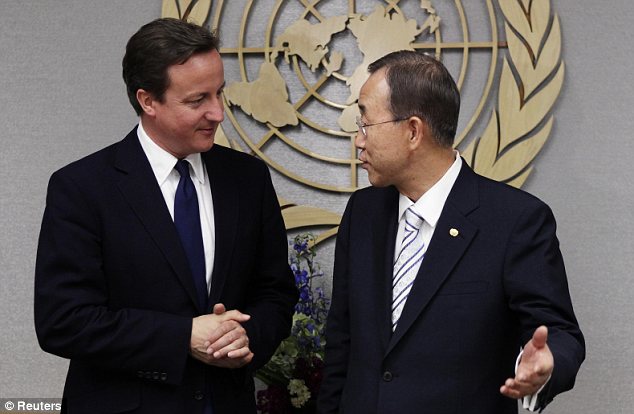 Hectic: David Cameron with U.N. Secretary-General Ban Ki-moon at the United Nations headquarters