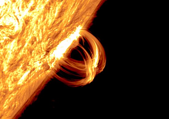 A gigantic looping prominence on the Sun. Credit: NASA/SDO. Click to enlarge.