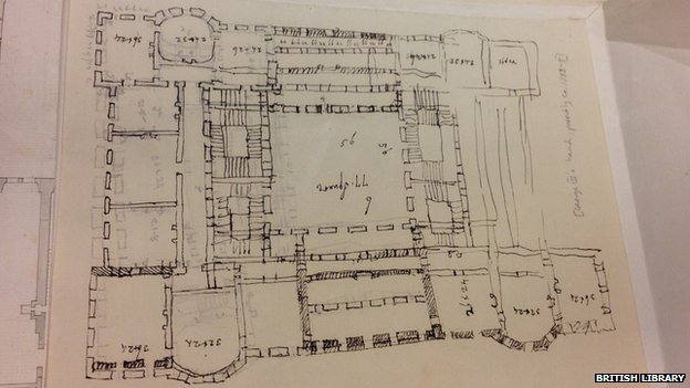 Peter Barber, head of map collections at the British Library, said the drawing, scribbled on the back of an order of service from St George's Chapel in Windsor, was "not an ordered plan".