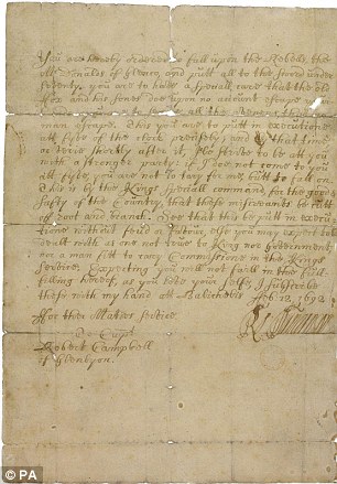 Death warrant: The signed order for the Massacre of Glencoe, which will form the centrepiece of a display of cultural 'treasures'
