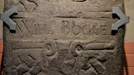 William Bogle had his name added to this ancient tombstone in the 18th century