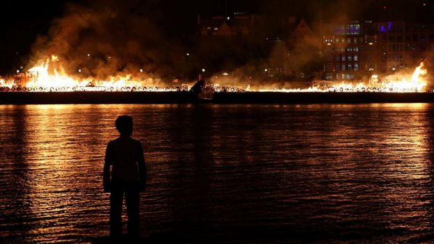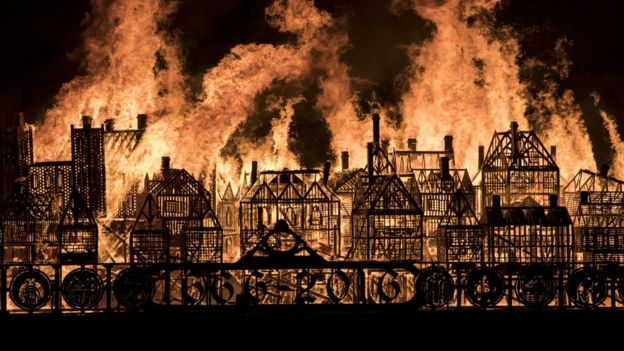 Great Fire of London retold with wooden replica blaze - BBC News