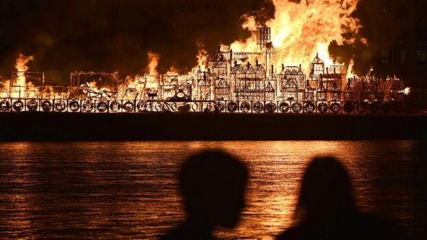 The burning of the replica of London took place during a festival held to commemorate the Great Fire.