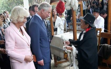 Prince Charles, Prince of Wales and Camilla, Duchess of Cornwall meet traditional wool producers at a Sustainability Fair in Bogota, Colombia
