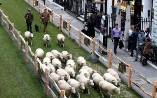 Two sheep breeds graze the length of Savile Row to mark the launch of Wool Week 2015 CREDIT: GETTY IMAGES/JOHN PHILIPS
